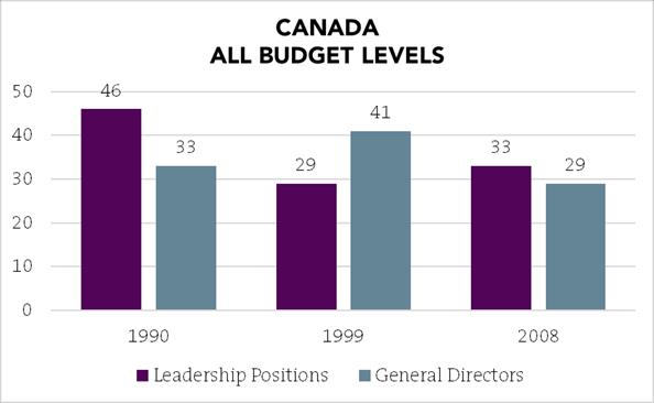 The graphs below show the statics and percentages, followed by links to the detailed findings from several other resources that present research on women in leadership roles in other sectors of the arts.