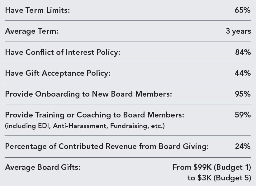 The newly released Opera Company Governance Report, drawn from data from 135 American and Canadian opera companies, provides context for company staff and board members to compare their practices to those adopted across North America. The report covers board size, structure, meetings, terms, policies, giving, and participation — highlights of which are excerpted here.